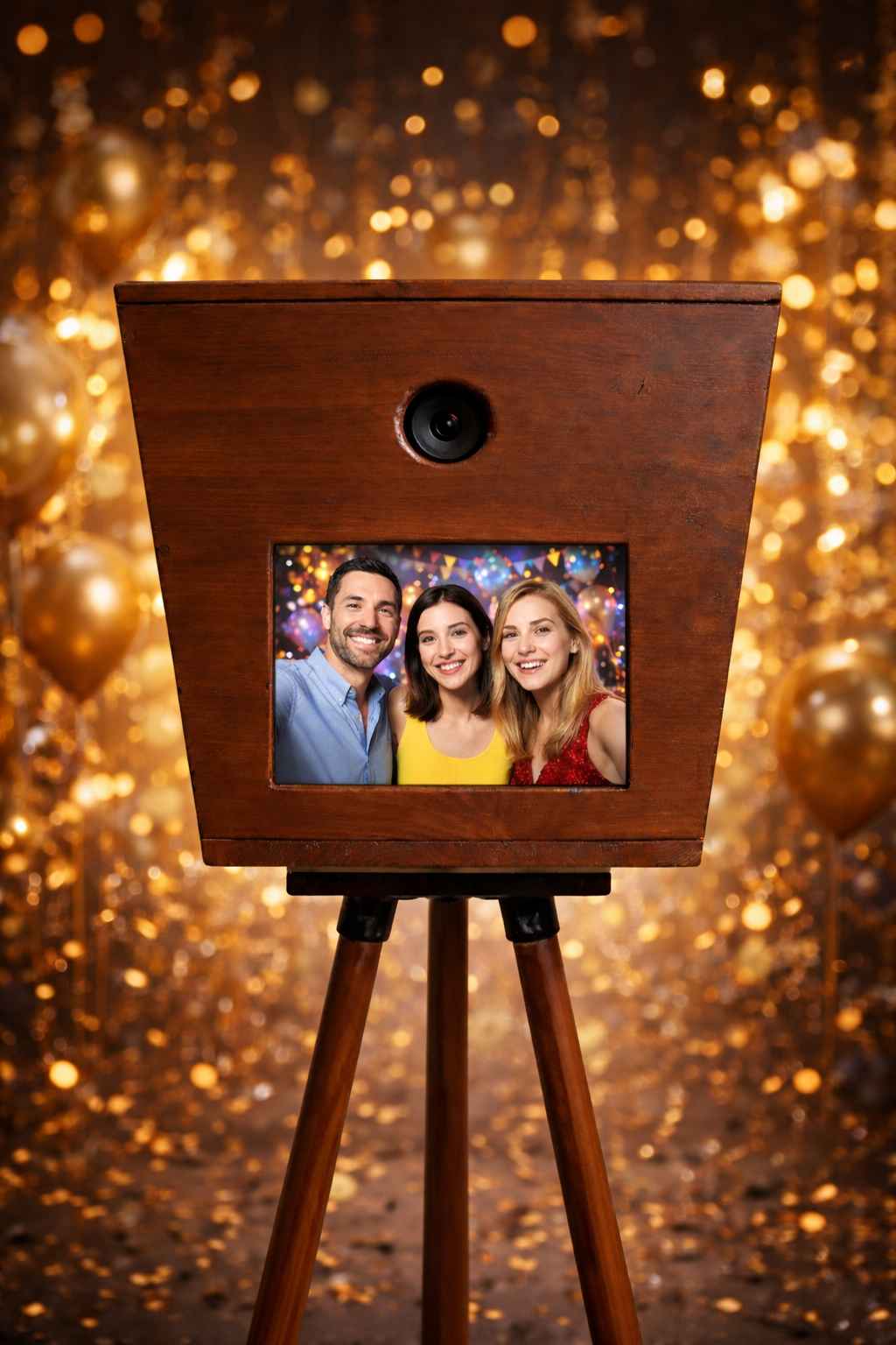 Wij gebruiken geen webcam, maar een professionele systeemcamera gecombineerd met premium studioverlichting. Het resultaat: geen donkere, korrelige plaatjes, maar perfect belichte foto’s (ook in een sfeervol verlichte zaal). Je gasten zien er fantastisch uit.