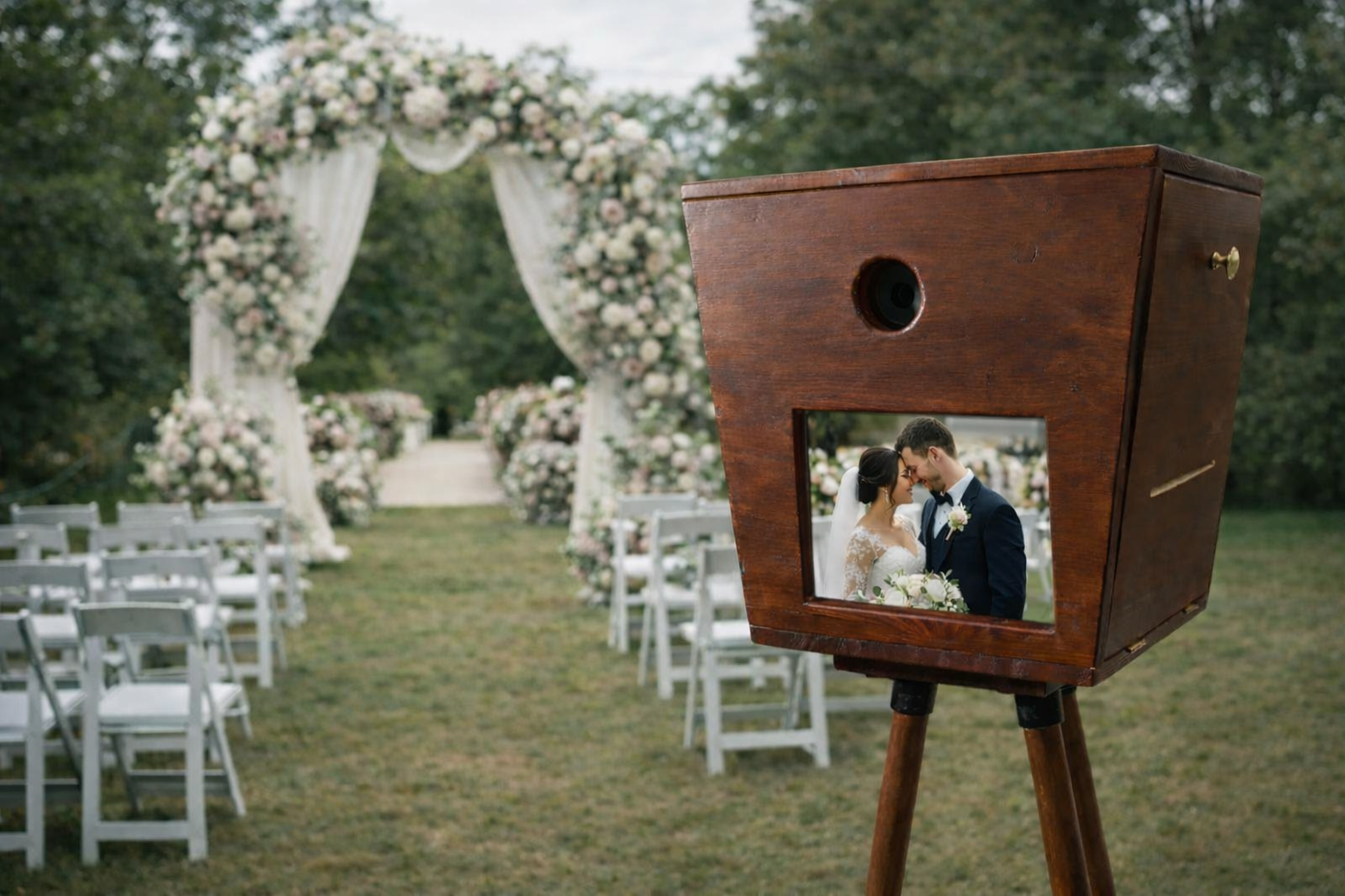 Upgrade je bruiloft of event met entertainment van studio-kwaliteit. Inclusief luxe achtergrond, premium props en onbeperkte prints.